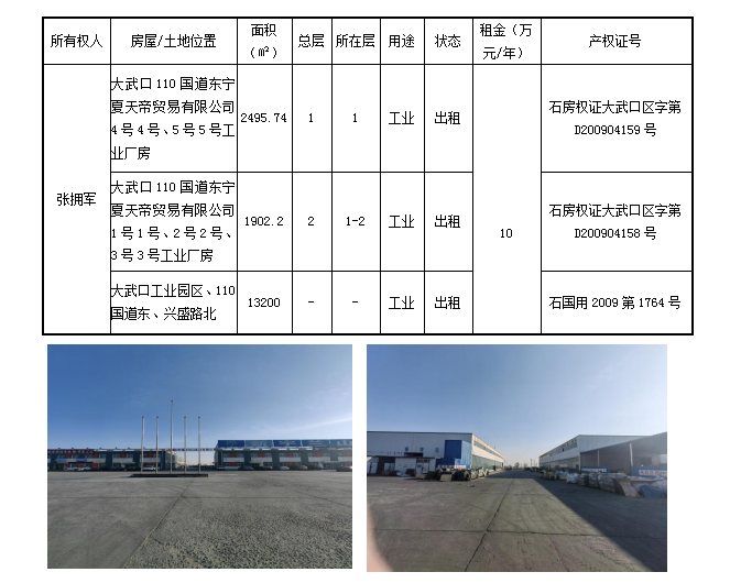 該戶債權(quán)抵押物位于110國(guó)道邊,交通便利,園區(qū)整體方正、規(guī)劃清晰,目前處于出租狀態(tài),租金10萬(wàn)/年。廠區(qū)空地面積較大,可用于倉(cāng)儲(chǔ)物流及各類輕工業(yè)生產(chǎn)加工。
