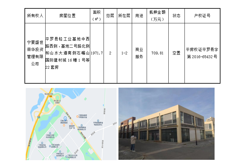 石嘴山國際建材城臨近京藏高速樞紐,交通便利,停車便捷。抵押物為聯(lián)排營業(yè)房,門前空間大,可用于商品銷售、倉儲堆料等。
