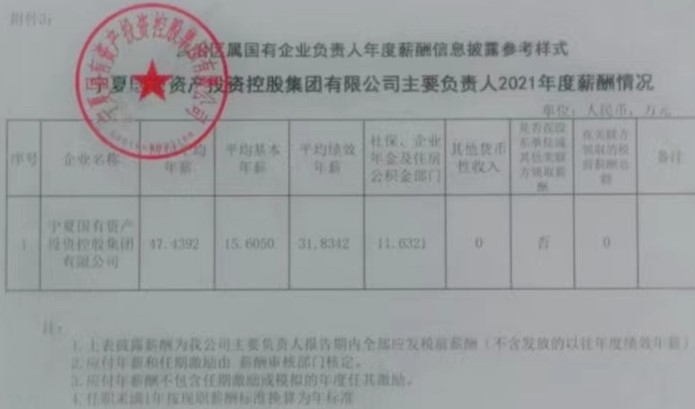 寧夏國有資產(chǎn)投資控股集團(tuán)有限公司主要負(fù)責(zé)人2021年度薪酬情況